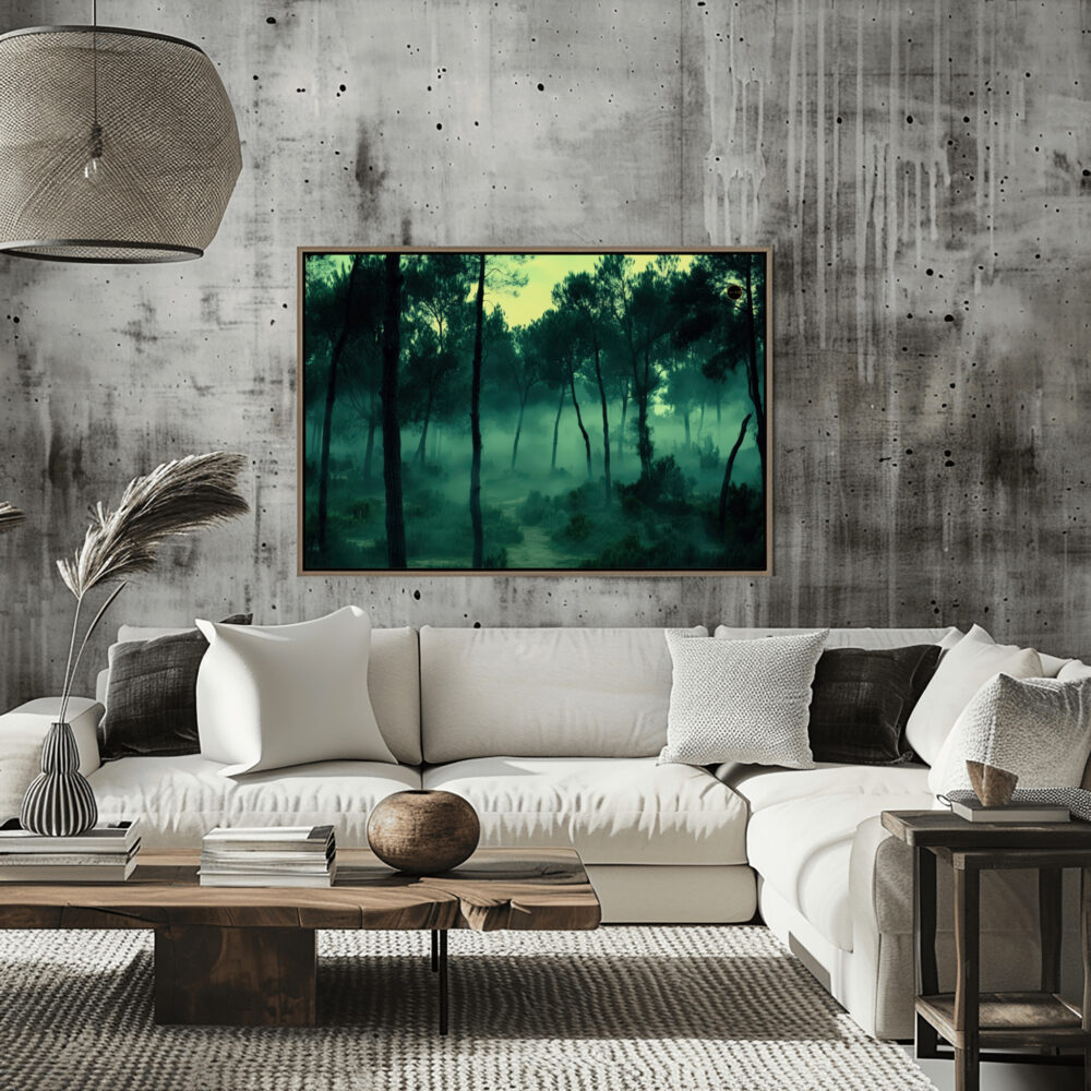 Tajemniczy obraz lasu okrytego mgłą. Głębia zieleni która wyciszy ciało i umysł.
