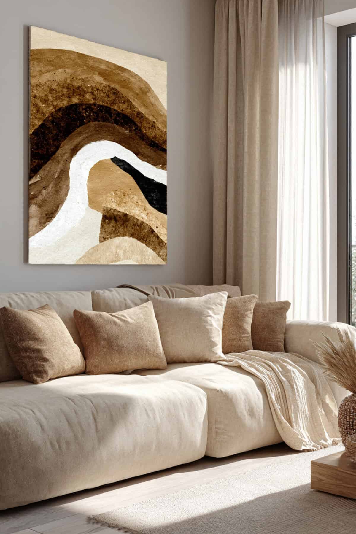 Ziemista Harmonia – Abstrakcyjny obraz w Odcieniach Beżu i Brązu | Nowoczesna Dekoracja Ścienna